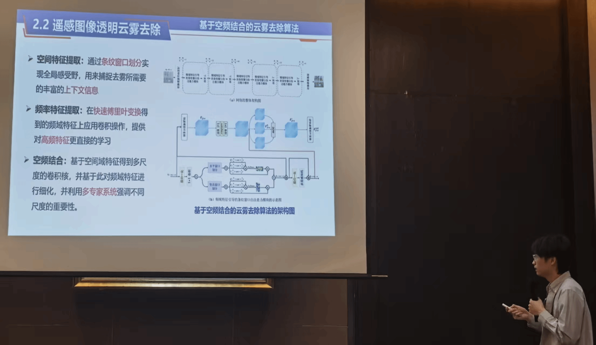 此外,在图像分析分会场,团队研究生阎敬禹作题为《大场景高质量遥感图像生成方法研究》的报告,系统介绍了团队在大场景条件下的生成式建模、感知一致性约束以及多模态先验融合等方面的最新工作与实验结果,获得与会专家学者关注与肯定。