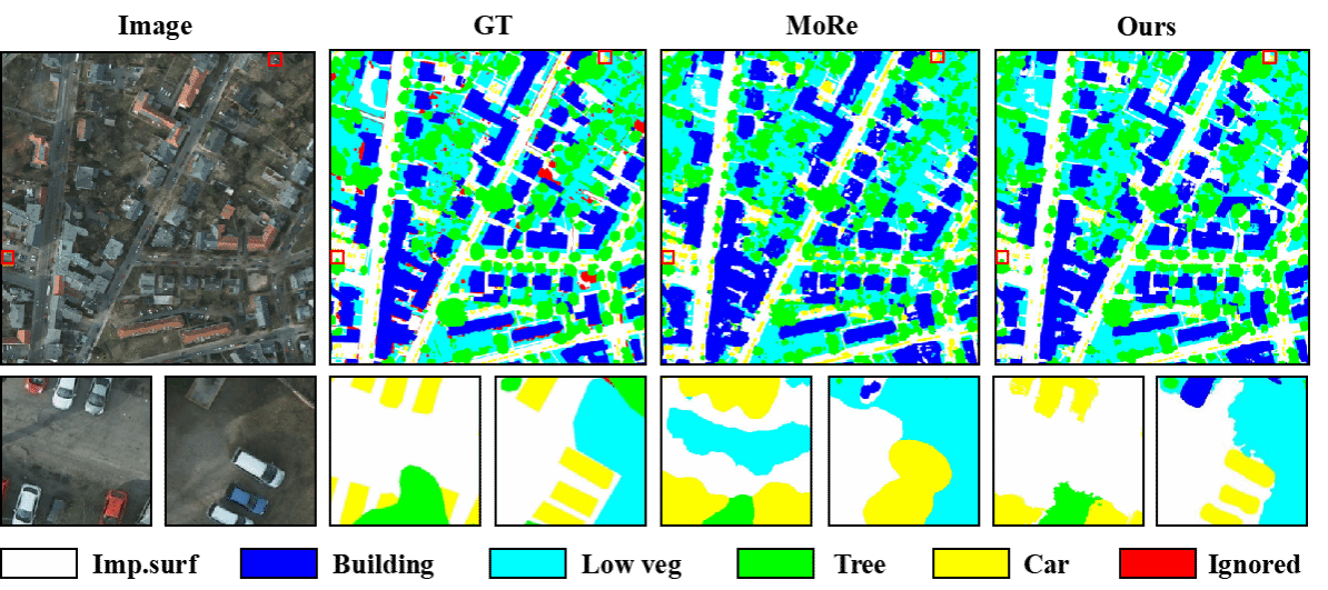 图3 Potsdam数据集上的分割结果对比