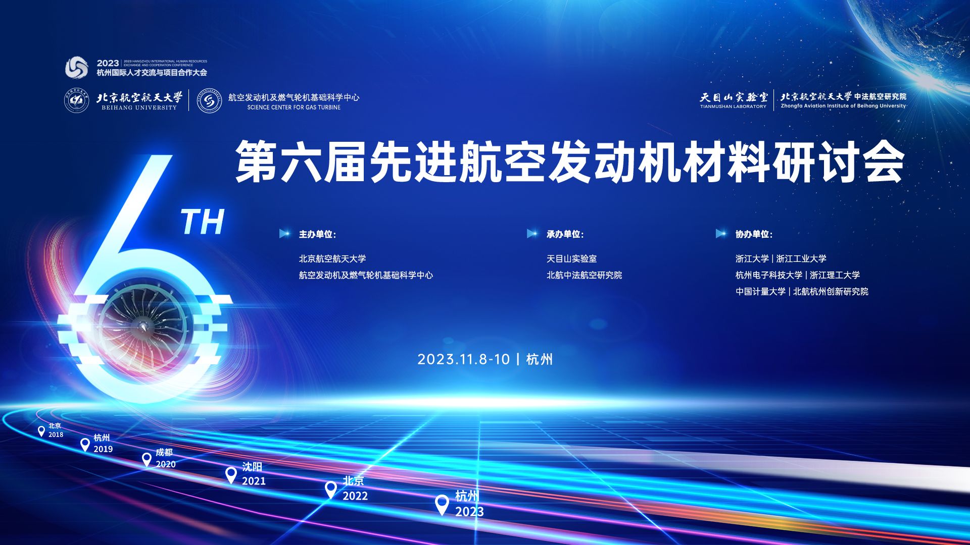 2023年11月8日-10日,在杭州亚运会和亚残运会胜利闭幕之际,“第六届先进航空发动机材料研讨会”在北京航空航天大学杭州国际校园隆重召开。此次会议也是杭州国际人才交流与项目合作大会的重点活动之一。会议由北京航空航天大学和航空发动机及燃气轮机基础科学中心主办,天目山实验室(航空浙江省实验室)和北航中法航空研究院联合承办,浙江大学、浙江工业大学、杭州电子科技大学、浙江理工大学、中国计量大学、北航杭州创新研究院协办。北京航空航天大学徐惠彬院士任大会主席。