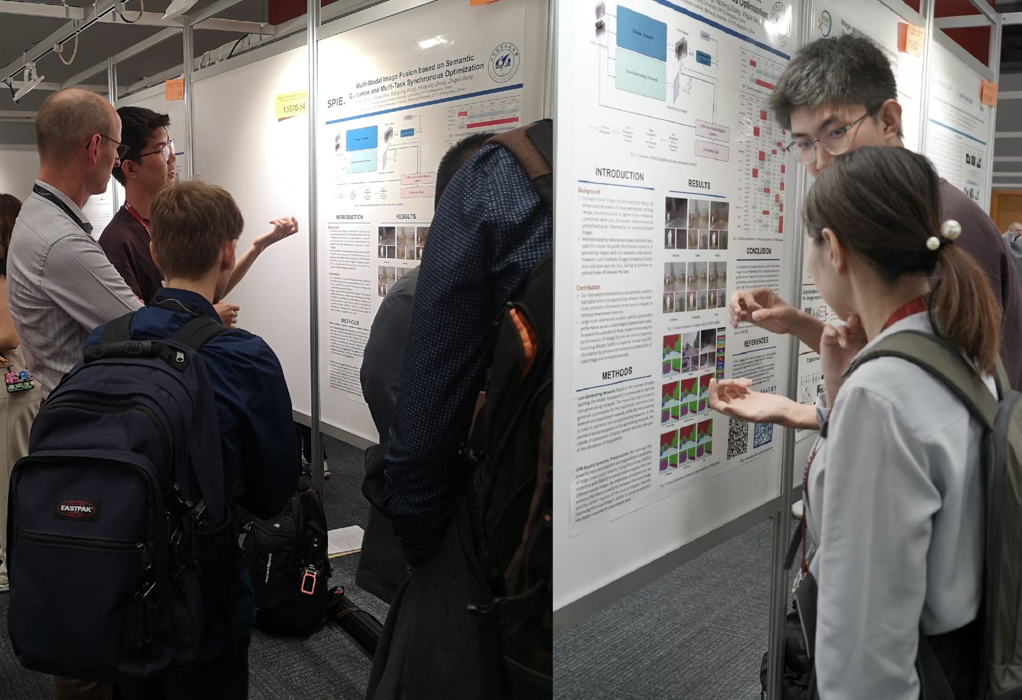 本次大会聚焦最新传感器和光子技术进展及环境遥感和安防领域的应用。大会分为学术研讨与技术展览两部分。学术研讨根据不同的研究领域分成多个会场,内容涵盖遥感、传感器技术、图像处理、通信技术、数据采集平台的研发以及在地球观测、天气监测、安防监控等方面的应用。团队成员参与了人工智能在遥感领域相关应用的论坛,介绍了团队在遥感语义分割、半监督目标检测、图像增强与融合等方面的研究成果。团队提出的基于选择性状态空间的语义分割模型,针对原始的Mamba架构进行了多种改进,有效的提升了图像处理的吞吐量和分割精度;提出的半监督目标检测架构,在原始数据集基础上使用伪标签进行数据扩充,有效提升了遥感目标检测的性能;团队的图像增强与融合方法,通过智能自适应的提取可见光和红外图像的互补特征,实现了基于红外图像的低光增强和像素级的图像融合,有效提高了极端条件的成像稳定性。