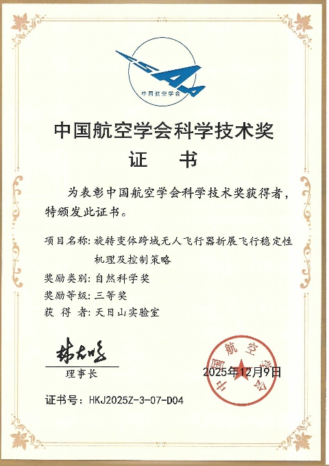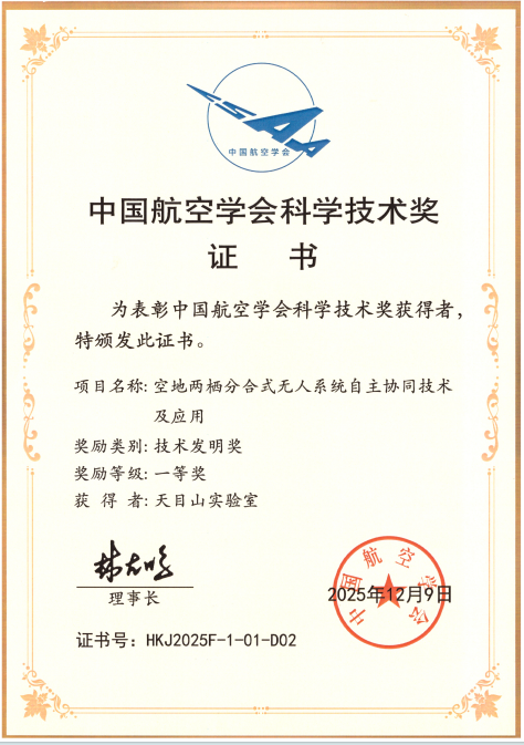 大会期间举办了中国航空学会年度颁奖,对多项科技奖励进行了集中表彰奖励,公布了有关项目立项结果。天目山实验室获得技术发明奖一等奖1项、自然科学奖三等奖1项。