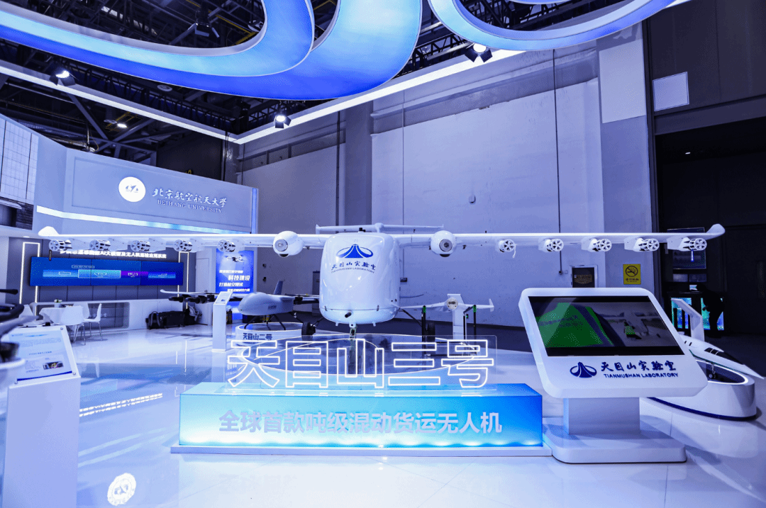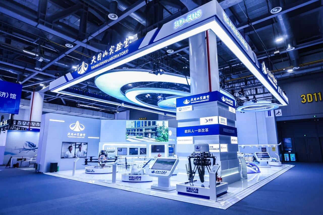 本届博览会集中展示 695 项新技术新产品,其中 57 件重磅展品聚焦产业前沿,天目山实验室全系列无人机组团首展即入选,成为航空产业(低空经济)馆最受瞩目的焦点。包括 “天目山一号”全球首款百公里级氢动力长航程多旋翼无人机及其2.0版AI智能氢动力长航时无人机、“天目山二号”全球首款垂起固定翼子母无人机、天目山三号系列-AL-100分布式短距起降货运无人机、“天目山四号”岛际物流水上无人机、“天目山五号”氢电混动长航程垂直起降固定翼无人机、天目山六号“小天”无人机自主作业智能体、“天目山八号”空基反无人机系统、“天目山十号”超声速静音旅客机以及天目山十一号-Vortex-F1智能超轻型单人低空飞行器等在内的多款创新机型。实验室与到场科学家、企业家、政府及用户代表齐聚一堂,共话开放合作,共绘低空经济发展新蓝图。