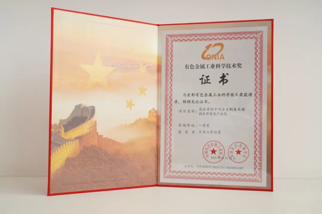 新闻动态 首页 - 媒体动态 - 新闻动态 - 正文 天目山实验室科研成果荣获2025年中国有色金属工业科学技术奖一等奖! 日期:2026-01-15阅读: 次 近日,中国有色金属工业协会与中国有色金属学会联合公布了2025年度有色金属工业科学技术奖获奖名单。以马朝利教授、郑瑞晓教授、魏大圣博士为主要完成人的天目山实验室航空轻合金材料团队,联合北京航空航天大学、立中四通轻合金集团股份有限公司、东北轻合金有限责任公司等多家单位共同完成的“高品质铝中间合金制备关键技术开发及产业化”项目,荣获2025年度有色金属工业科学技术奖一等奖。图|中国有色金属工业科学技术奖获奖证书高性能铝合金是国民经济与国防建设不可或缺的关键基础材料。铝中间合金作为制备高性能铝合金的核心功能母合金,对调控合金成分、优化微观组织、提升综合性能具有至关重要的作用,被喻为铝工业的“味精”。然而,其制备过程面临组元偏析、夹杂物超标、脆性相富集等多重技术挑战,导致我国高品质Al-Ti、Al-Zr、Al-B等关键铝中间合金长期依赖进口,成为制约铝工业高端化发展的“卡脖子”难题。项目紧扣国家重大战略需求和行业发展痛点,聚焦高品质铝中间合金这一长期制约我国铝工业高端化发展的“卡脖子”难题,创新提出了“多场协同熔体纯净化、凝固组织细化和均匀弥散化、强剪切连续挤压成形”三位一体的技术路线,实现了高端铝中间合金制备工艺的重大突破,显著提升了合金纯净度、组织均匀性与加工性能,打破了国外对Al-Ti、Al-Zr、Al-B等关键中间合金的长期垄断。天目山实验室和北京航空航天大学为该项目提供核心技术支撑,系统构建了多场协同作用下铝中间合金熔体纯净化理论体系,提出了连续强剪切成形提升性能的理论路径,为实现初生相从百微米级向十微米级的跨越式细化及均匀弥散提供核心科学依据。项目各项技术指标显著优于国内外先进指标,实现从“跟跑”到“领跑”。相关产品已广泛应用于航空航天、新能源汽车、高端装备等领域,累计应用于超1000万吨高端铝材,间接产值2500亿以上,经济效益显著。项目有力保障了我国高端制造关键材料供应,支撑了铝基材料的高质量发展,提升了我国高端铝基材料的国际竞争力。图|天目山实验室马朝利教授指导科研工作中国有色金属工业科学技术奖是经国家科学技术奖励办公室批准,由中国有色金属工业协会和中国有色金属学会联合设立的省部级科技奖项,是我国有色金属行业的最高奖,具有广泛社会影响力和行业认可度,旨在表彰在有色金属行业基础研究、技术突破及产业化应用中做出突出贡献的单位与个人。天目山实验室将始终坚持创新驱动发展战略,推动科技创新和产业创新深度融合,持续深化产学研协同合作,加快推进科研攻关与成果转化,为助力我国实现更高水平的科技自立自强贡献坚实力量。 下一篇:天目山实验室600kg级智能重载无人直升机首飞成功!开启低空经济“超级飞手”新时代
